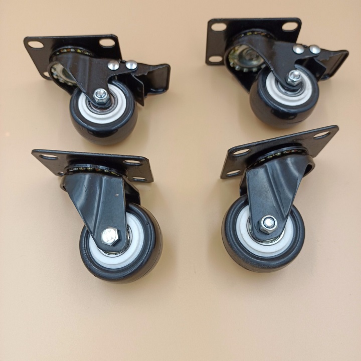 Bộ 4 bánh xe đẩy hàng (2 xoay có khóa - 2 xoay không khóa) loại tốt Kt 50x25 mm - Tải trọng 150kg - Di chuyển đa mặt sàn - Gồm 2 bánh xoay