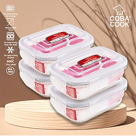 Bộ 5 hộp thủy tinh chịu nhiệt COBACOOK hình tròn 400ml Chất liệu : Thủy tinh chịu nhiệt,nắp nhựa PP Màu sắc : Trắng trong Dung tích : 400ml Thương hiệu : COBA'COOK Hộp