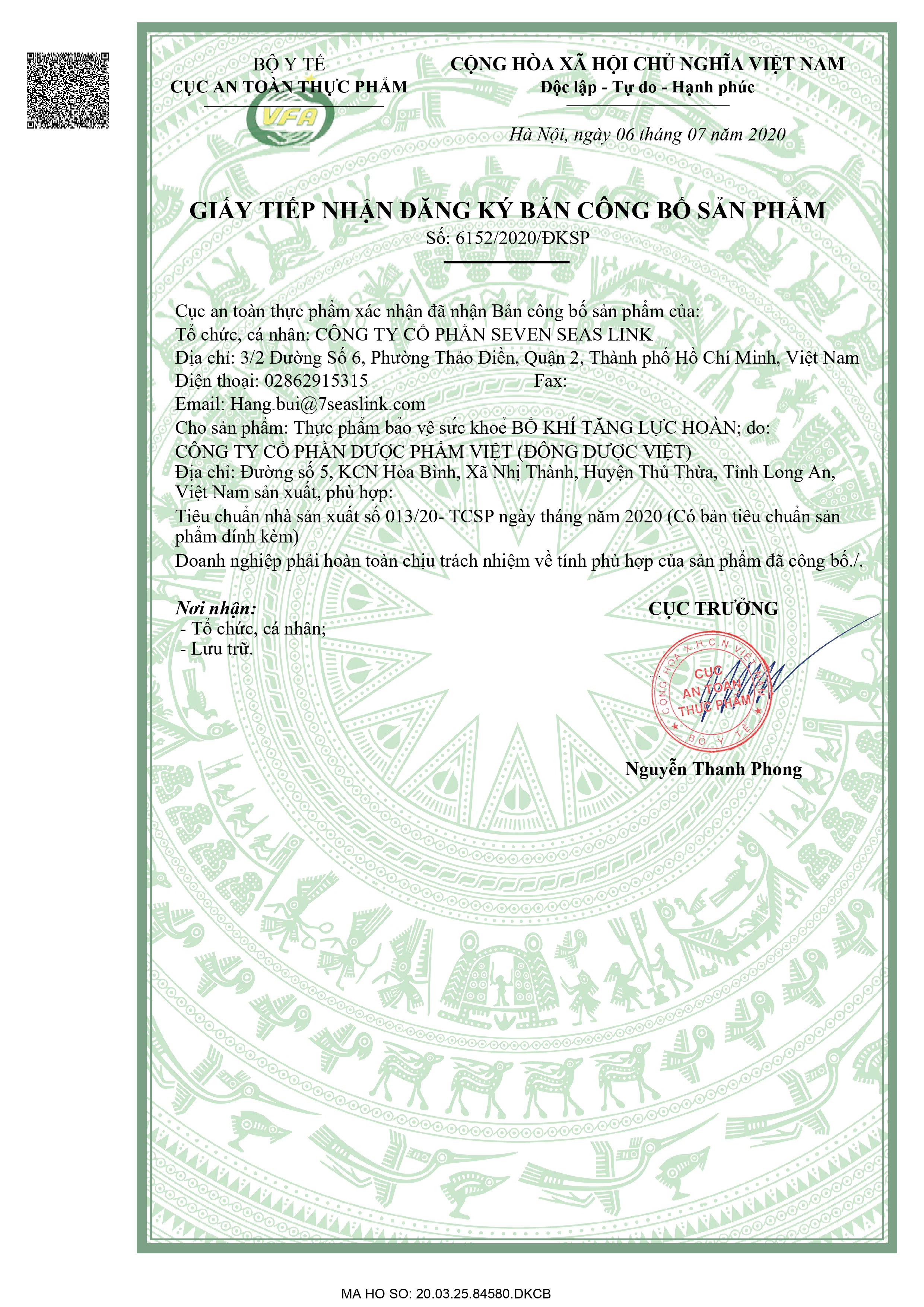 ±± Sản phẩm đã được xác nhận công bố của Bộ Y Tế.