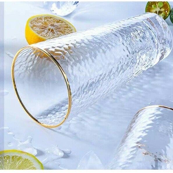 ✨Bộ 6 cốc loe cao thấp thủy tinh viền vàng vân sần 400ml