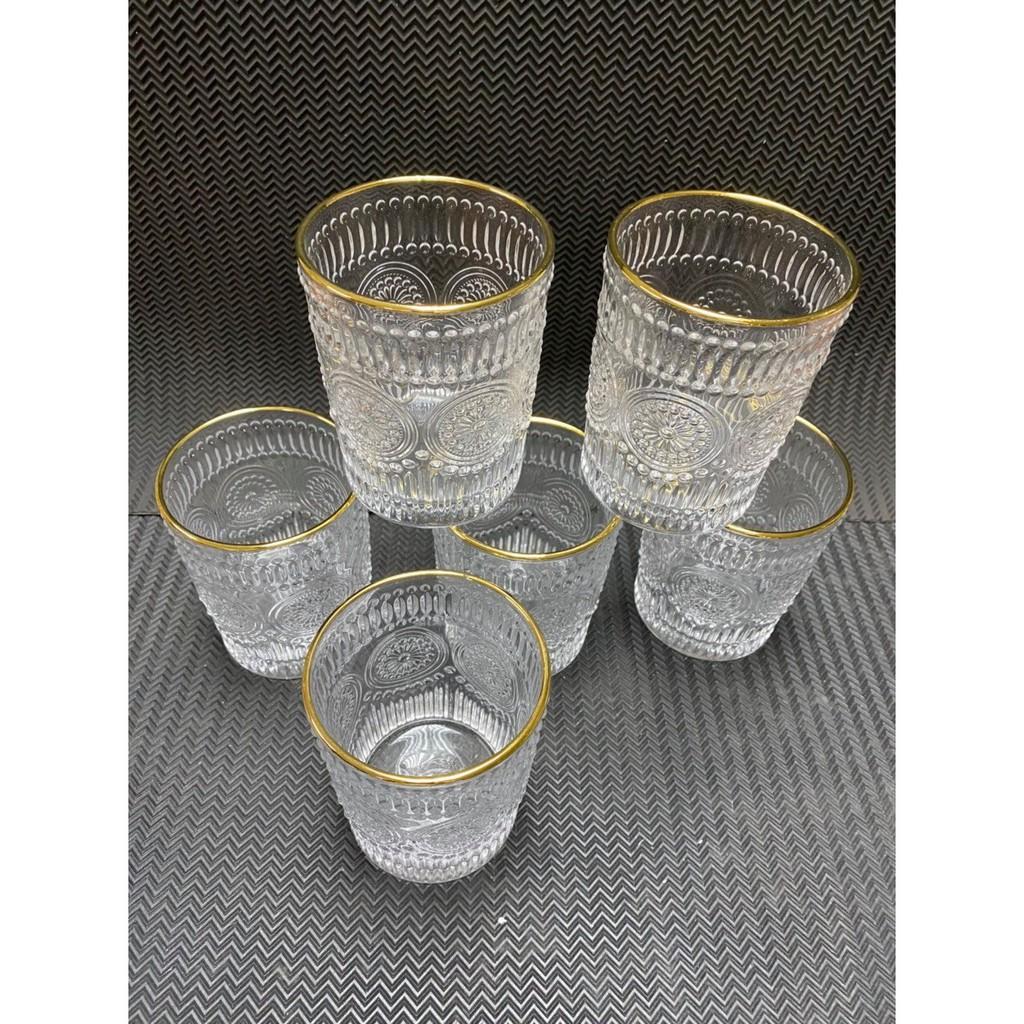 ✨Bộ 6 cốc thủy tinh trắng viền vàng uống nước, trà cà phê hoa văn tròn cao cấp