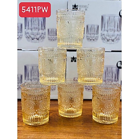 ✨Bộ 6 cốc thủy tinh uống nước hoặc rượu tây hoa văn trống màu vàng gold sang trọng