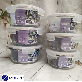 ✨Bộ 6 Hộp Bảo Quản Thủy Tinh Tròn Lock&Lock Glass Euro (LLG821x3,LLG831x3) LLG821S6