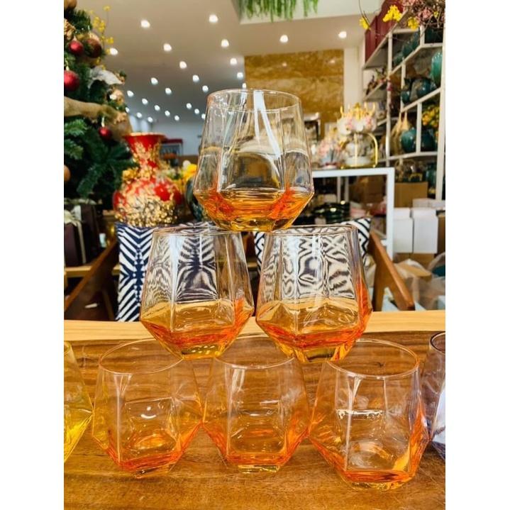 ✨Bộ 6 ly thủy tinh chịu nhiệt cao cấp dùng uống nước hoặc rượu tây vân kim cương đỏ