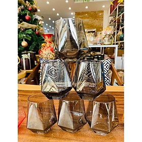 ✨Bộ 6 ly thủy tinh chịu nhiệt cao cấp dùng uống nước hoặc rượu tây vân kim cương ghi