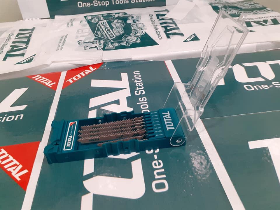 Thông số kĩ thuật -Mã sản phẩm: TACSD7386 -Nhà sản xuất: Total -Gồm 1 lưỡi 127D cắt nhôm -1 lưỡi cưa TAC51101D cắt gỗ (bề mặt sạch) -2 lưỡi cưa TAC51118B cắt kim loại -4 lưỡi cưa TAC51111C cắt gỗ (cắt nhanh) -Đóng gói trong hộp nhựa. 24/T