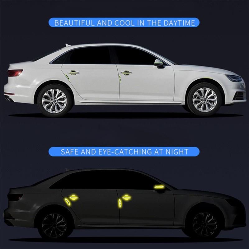 Bộ 8 Miếng Dán Tay Nắm Cửa 4 Miếng Dán Họa Tiết Sợi carbon 3d Phản Quang Chống Trầy Trang Trí Xe Hơi Tem trang trí ô tô dán phản quang gắn tay mở cửa xe hơi và hõm tay cửa vân carbon phản quang sang trọng