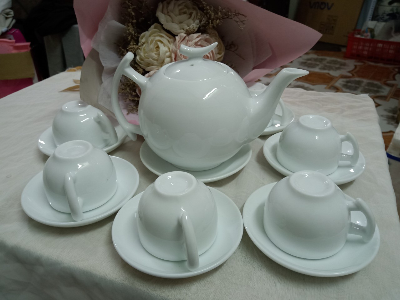 Bộ ấm chén men trắng gốm sứ Bát TràngBộ ấm chén men trắng gốm sứ Bát Tràng