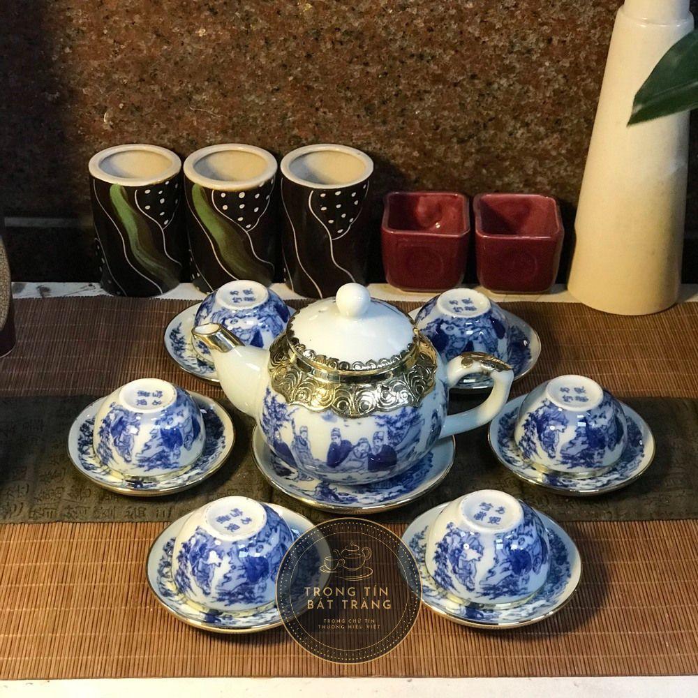 Bộ Ấm Chén Trúc Lâm Thất Hiền Vẽ Vàng [Bát Tràng Plaza]