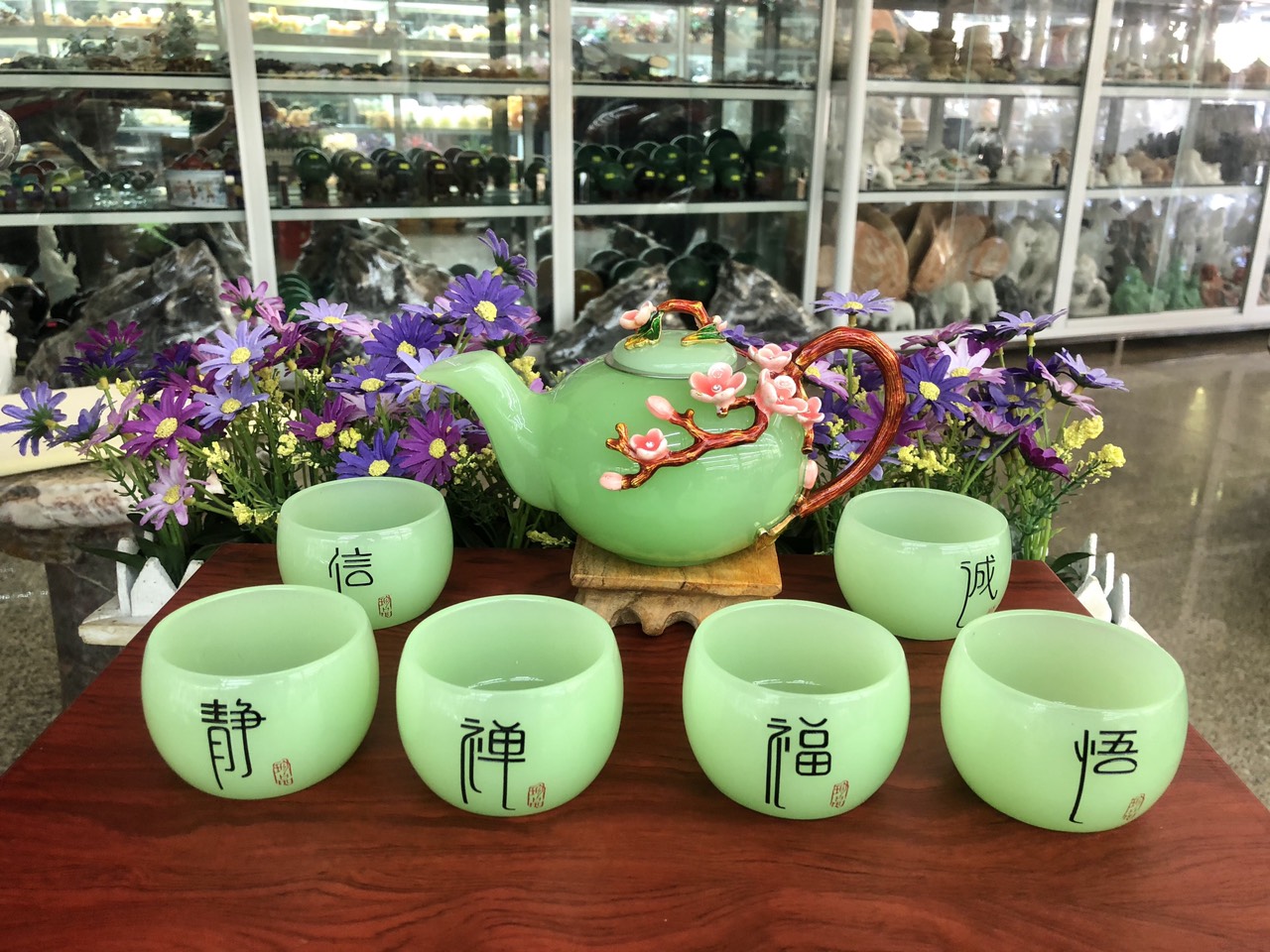 Chất liệu: Đá ngọc Serpentine Bộ sản phẩm gồm: 7 dĩa, 6 ly và 1 ấm trà Dùng để uống trà hoặc làm quà biếu tặ
