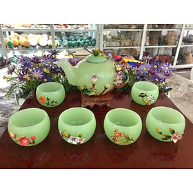 Chất liệu: Đá ngọc Serpentine Bộ sản phẩm gồm: 7 dĩa, 6 ly và 1 ấm trà Dùng để uống trà hoặc làm quà biếu tặ