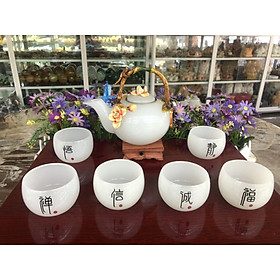 Chất liệu: Đá bạch ngọc Bao gồm: 01 ấm; 06 chén, 1 tách đựng nước thừa và hộp đựng cao cấp Kích thước : Dài 36 cm x 25 cm x 13 cm ( Bao