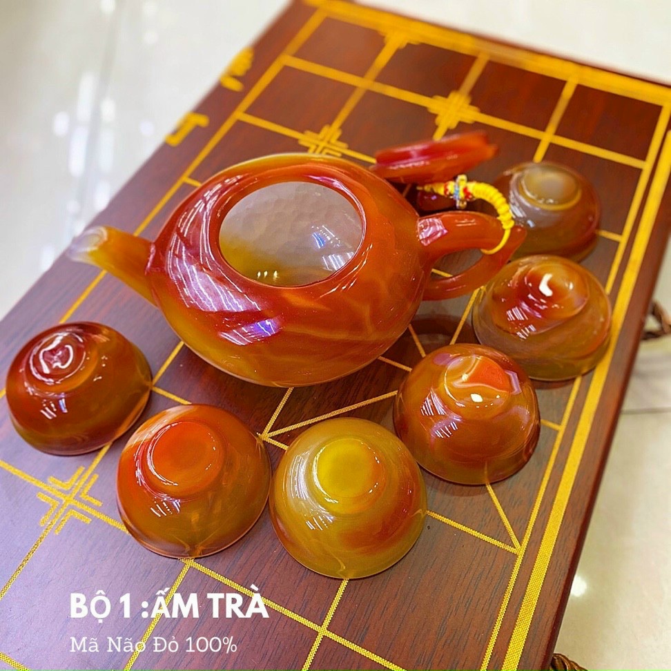✨Bộ ấm trà đá mã não đỏ tự nhiên