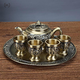 ✨Bộ ấm trà đồng 4 ly - 6 ly | Bộ ấm trà ban thờ phật - thần tài cao cấp hoa văn họa tiết voi Thái phú quý đại cát