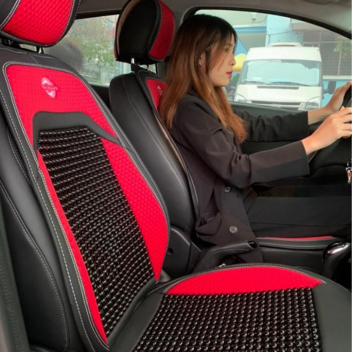 Bộ áo ghế ô tô lót liền hạt gỗ da cao cấp phủ 1 ghế trước, có đan hạt gỗ chống nóng, massage lưng