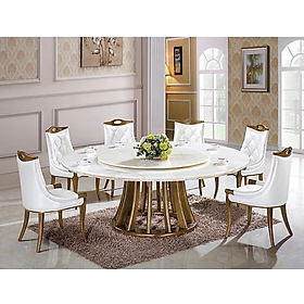 Bộ Bàn Ăn Cao Cấp Khung Inox Mặt Đá Ngọc 6 Ghế Rex Nhập Khẩu
