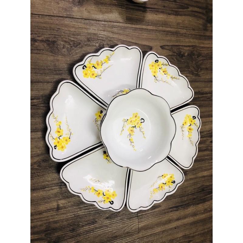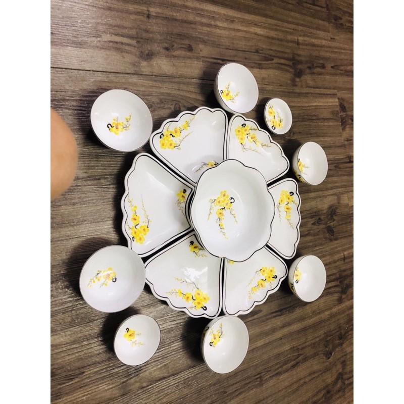 ✨Bộ bát đĩa hoa mặt trời, họa tiết hoa mai vàng. Gốm sứ Bát Tràng.