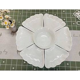 Set đĩa hoa mặt trời gốm sứ Bát Tràng cao cấp men trắng sang chảnh 1 set gồm : 1 bát tô , 6 đĩa cánh hoa , 6 bát cơm, 1 bát mắm ,