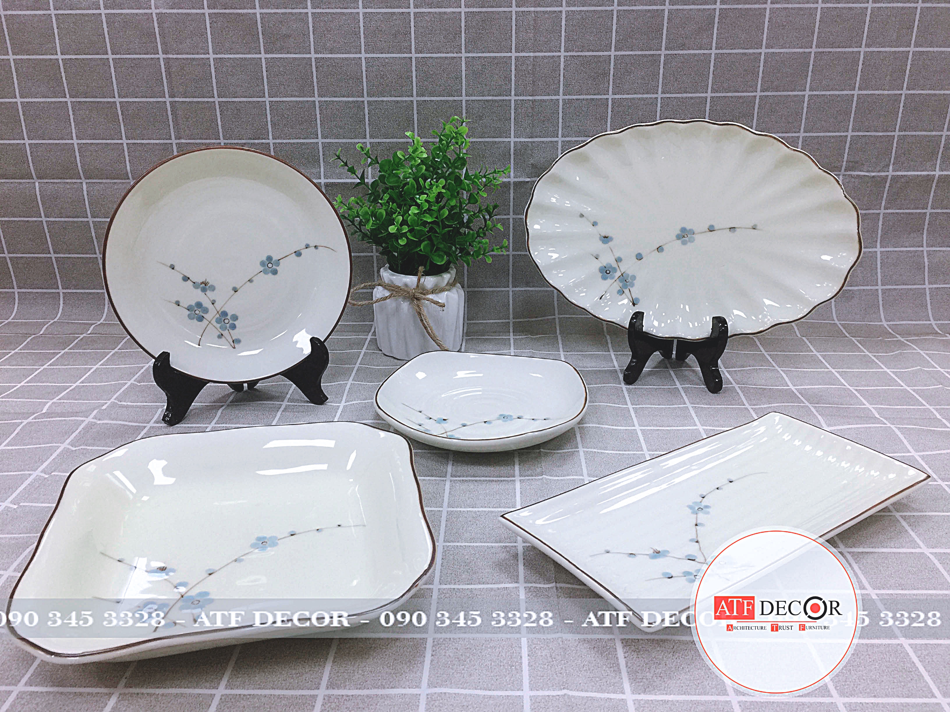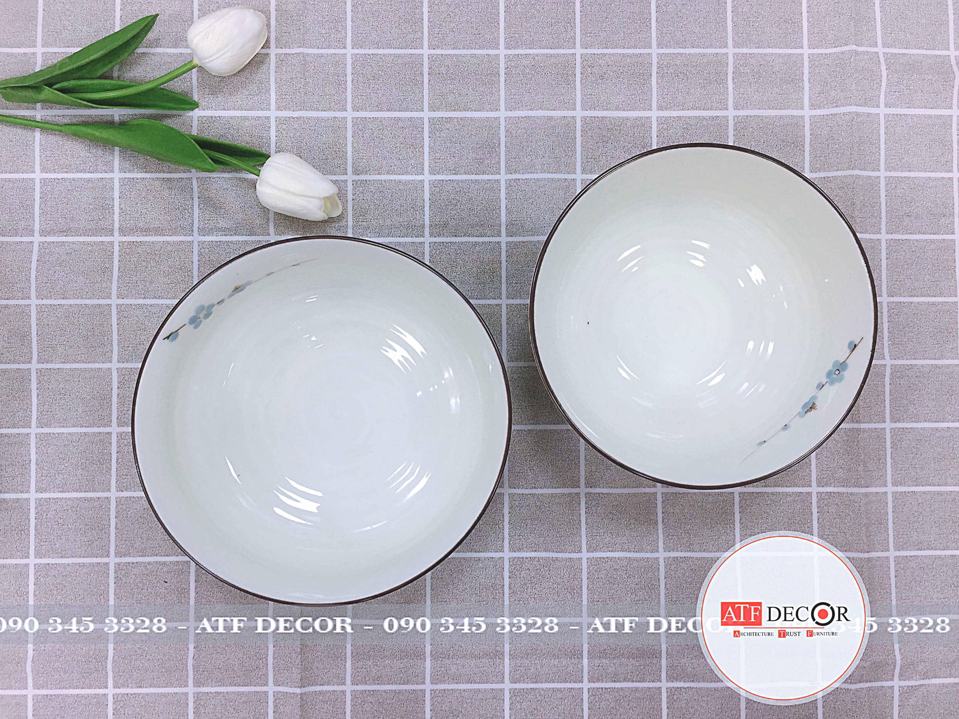 ✨Bộ bát đĩa men kem Bát Tràng cao cấp vẽ đào xanh