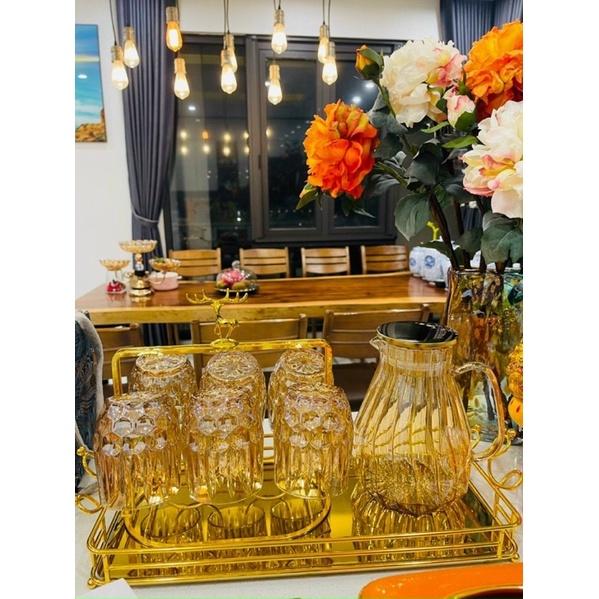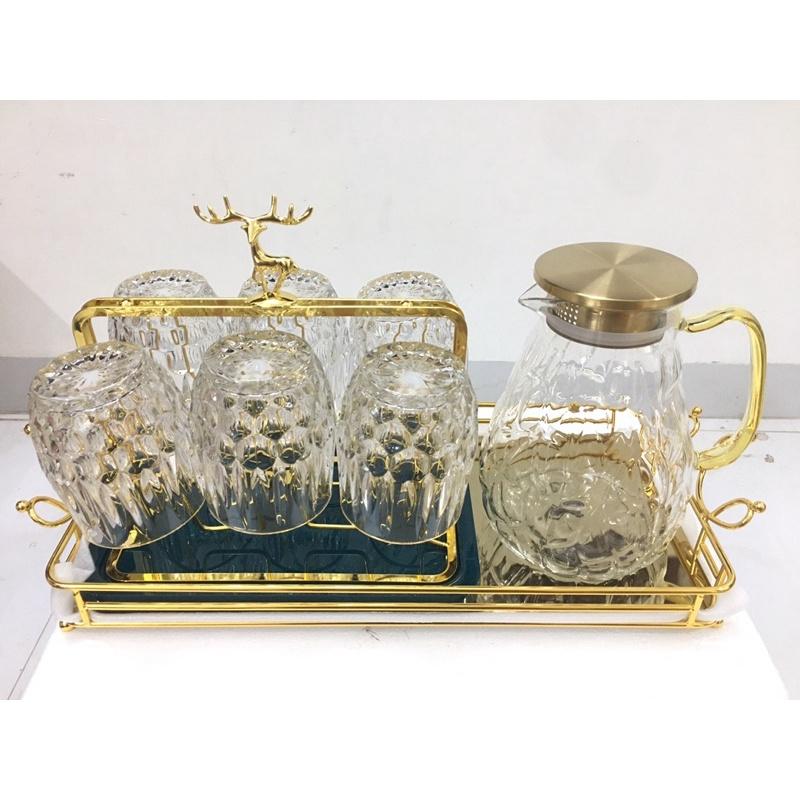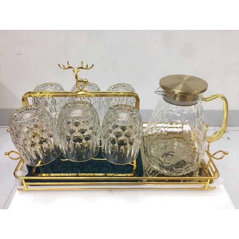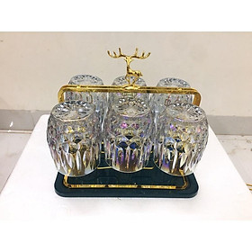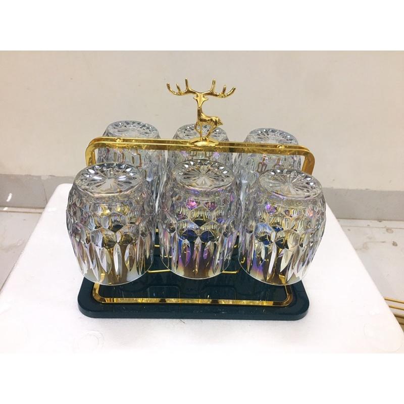 Combo Bộ 6 cốc thủy tinh cao cấp kèm giá úp tròn có khay hứng Combo gồm: 1 bình 6 cốc cốc 1 giá úp hươu 1 khay vương miện