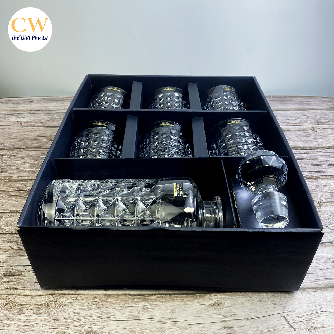 Bộ Bình Ly Rượu Mạnh Pha Lê Tiệp Bohemia Diamond (1 bình 6 cốc) sang trọng và đẳng cấp.