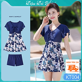 ✨Bộ bơi trung niên, áo tắm cho người có tuổi, đồ bơi cho mẹ và bà, mẫu liền thân dáng váy & quần short đùi rời gọn gàng, màu sắc trang nhã, chất thun bơi lạnh Lycra cao cấp dày mịn mát, co giãn đa chiều | KT004