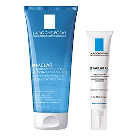 Bộ chăm sóc da Kem Giảm Mụn Chuyên Biệt La Roche-Posay Effaclar Effaclar A.I. (15ml) + Gel Rửa Mặt Tạo Bọt Làm Sạch & Giảm Nhờn Cho Da Dầu Nhạy Cảm La Roche-Posay Effaclar Purifying