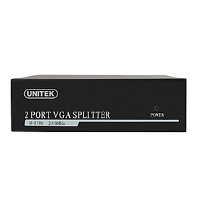 Bộ chia VGA 1 ra 2 Unitek U-8706 - Hàng Chính Hãng Đầu vào: 1 cổng VGA Đầu ra:2 cổng VGA Kháng đầu vào: 75Ω Truyền Khoảng cách lý tưởng : 25m Độ phân giải: