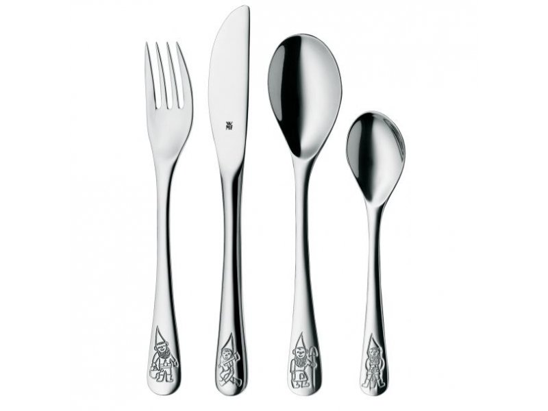 Bộ dao kéo lùn WMF của WMF gồm 4 phần: dao, nĩa, thìa và thìa cà phê. Các cạnh dao kéo được bo tròn chắc chắn. Bề mặt của mỗi bộ phận đều sáng bóng và