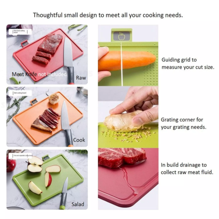 Bộ sản phẩm bao gồm: 03 thớt và 03 dao thiết kế riêng biệt, phân loại bằng màu sắc thuận tiện sử dụng. Bảo vệ chế độ ăn, uống lành mạnh cho gia đình bạn.