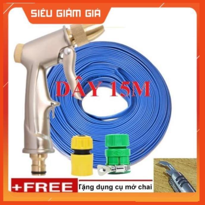 ✨Bộ dây vòi xịt nước rửa xe, tưới cây . tăng áp 3 lần, loại 15m 206701-1 đầu đồng,cút+tặng mở chai