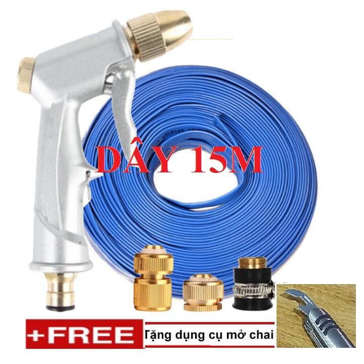 ✨Bộ dây vòi xịt nước rửa xe, tưới cây . tăng áp 3 lần, loại 15m 206701 đầu đồng,cút đồng+ tặng mở chai