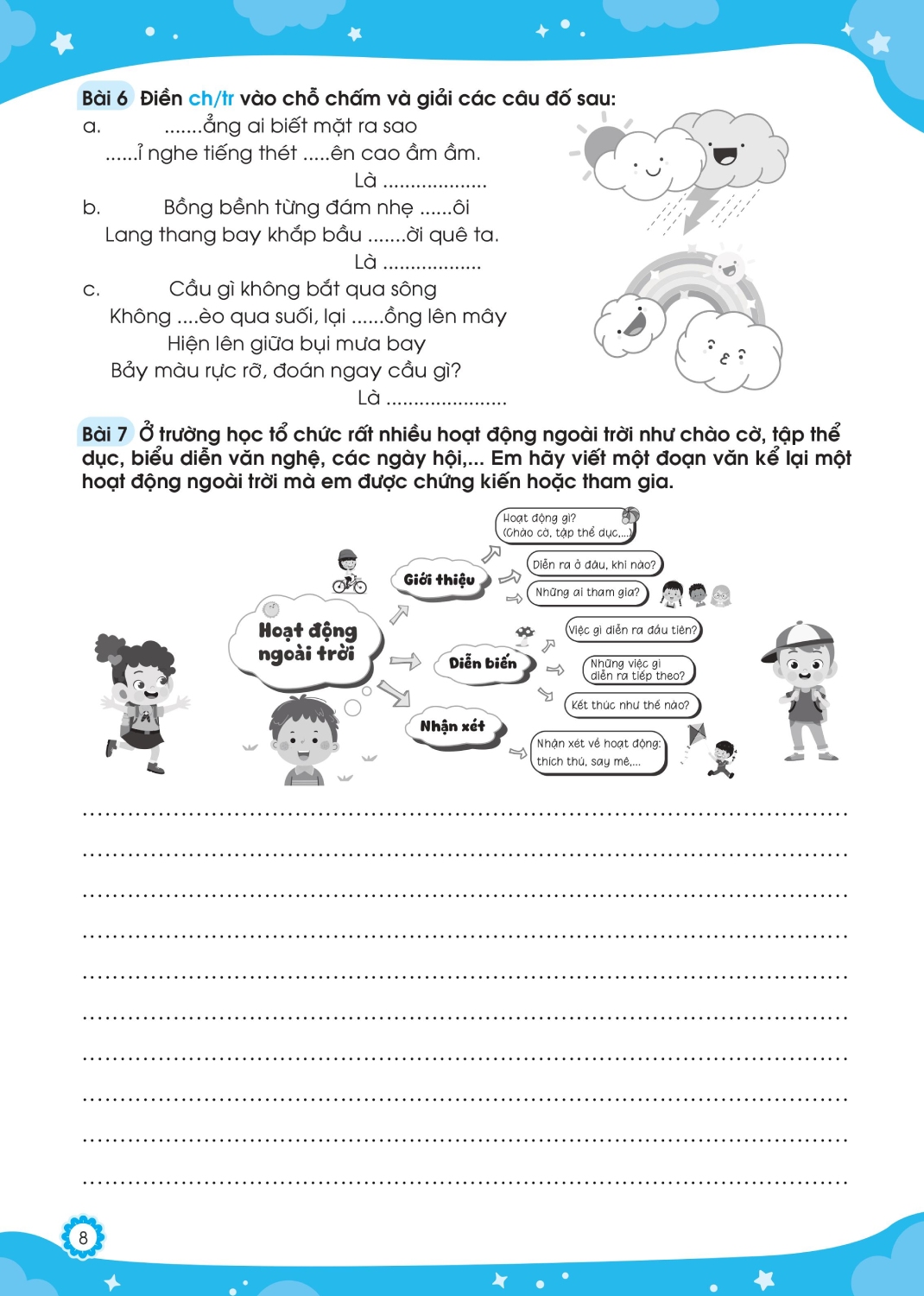 Mỗi phiếu trong cuốn sách sẽ tương ứng với nội dung một tuần học trên lớp của các em. Các em sẽ được tiếp thu các kiến thức về từ, tìm hiểu nghĩa của từ