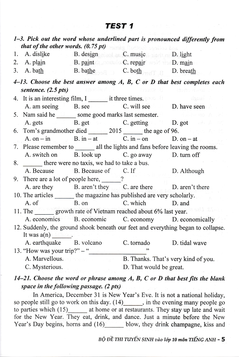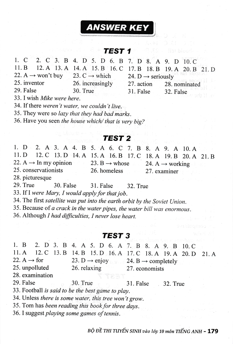 Để giúp các em học sinh lớp 9 có thêm tài liệu để luyện tập, củng cố, và hệ thống các kiến thức cơ bản trong chương trình Tiếng Anh lớp 9, chuẩn bị cho kì thi Tuyển sinh vào lớp 10 Trung học phổ thông, chúng tôi biên soạn cuốn Bộ Đề Thi Tuyển Sinh Vào Lớp 10 Môn Tiếng Anh.