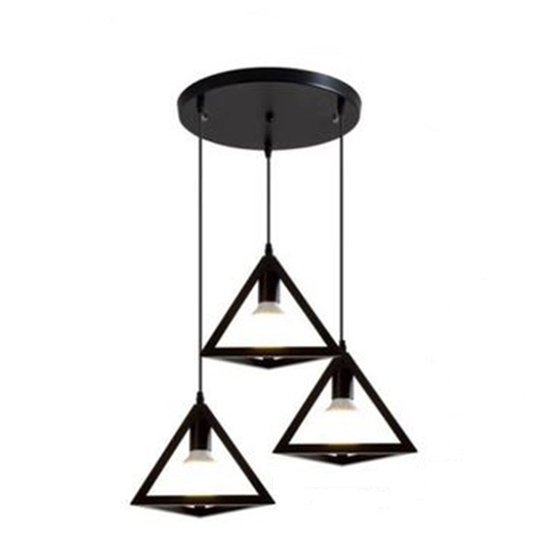 Bộ 3 đèn thả khối tam giác trang trí cao cấp kèm bóng LED và đế ốp trần Đường kính đèn 25 cm. Làm bằng khung sắt sơn tĩnh điện. Phù hợp cho trang trí quán cafe,
