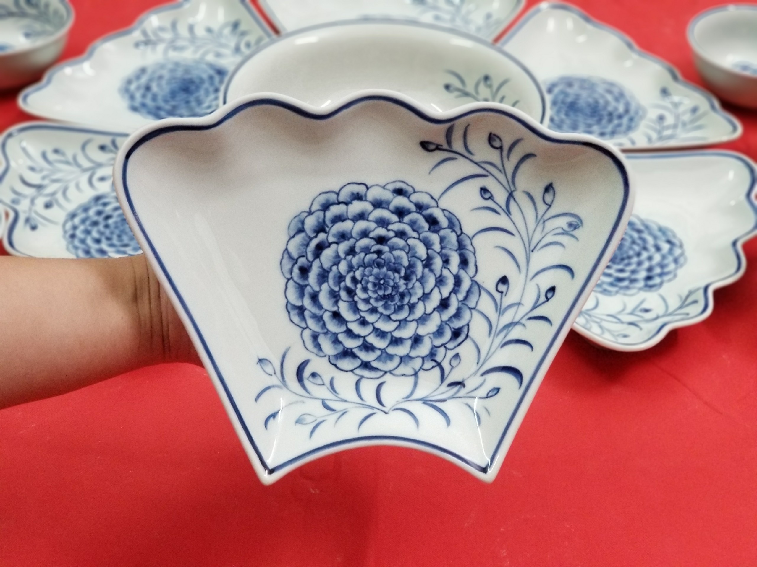 BỘ BÁT ĐĨA HOA MẶT TRỜI SEN XANH 18 CHI TIẾT - TRỌN BỘ gồm : - 1 Bộ 6 cánh đĩa + bát tô tạo hình bông hoa , đk cả bộ 45cm rất