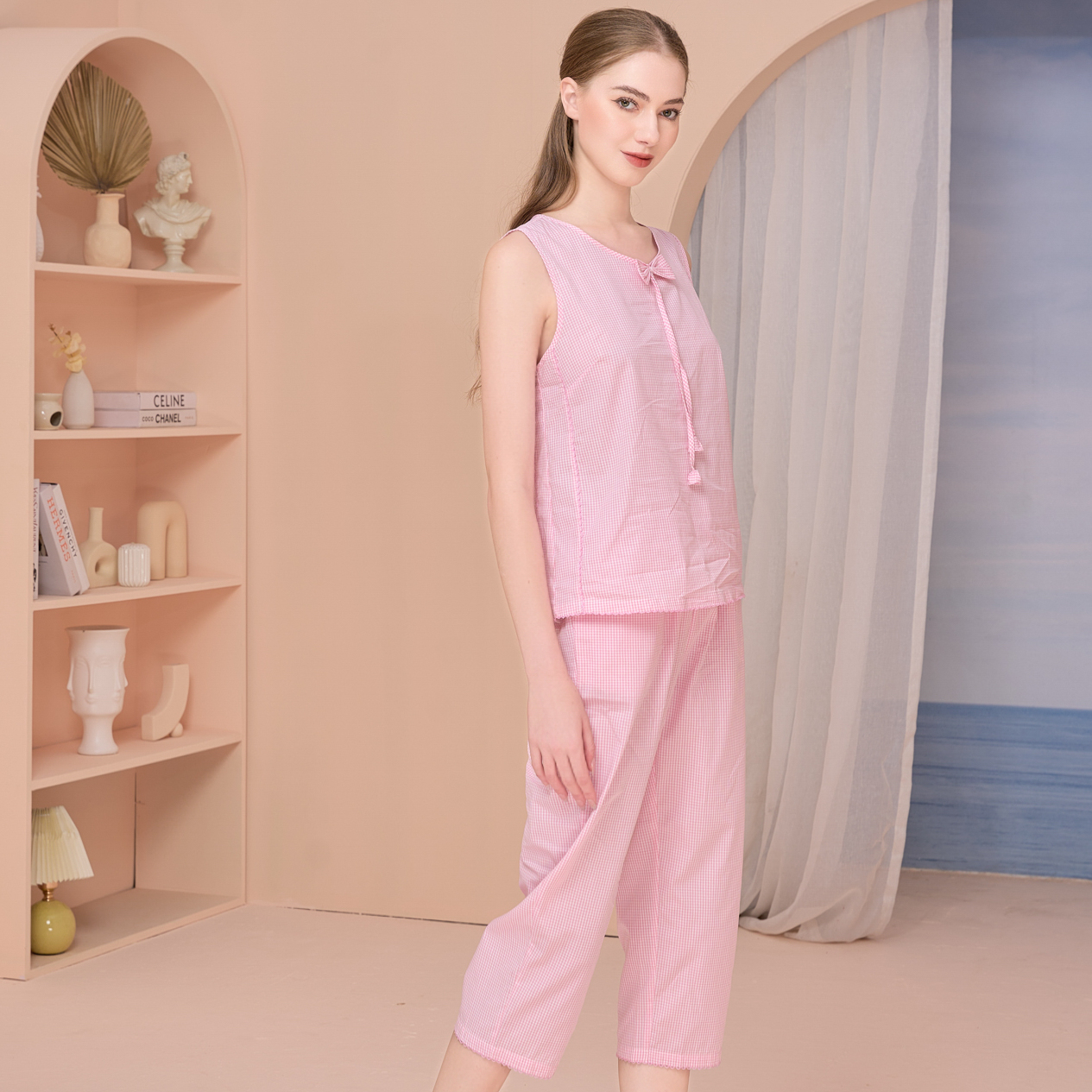 Quần lửng mặc nhà LMcation Alia mềm mại, sang trọng, được may từ chất liệu lụa cao cấp. Quần dài qua đầu gối, có túi hai bên tiện lợi và đính nơ xinh xắn, hoàn