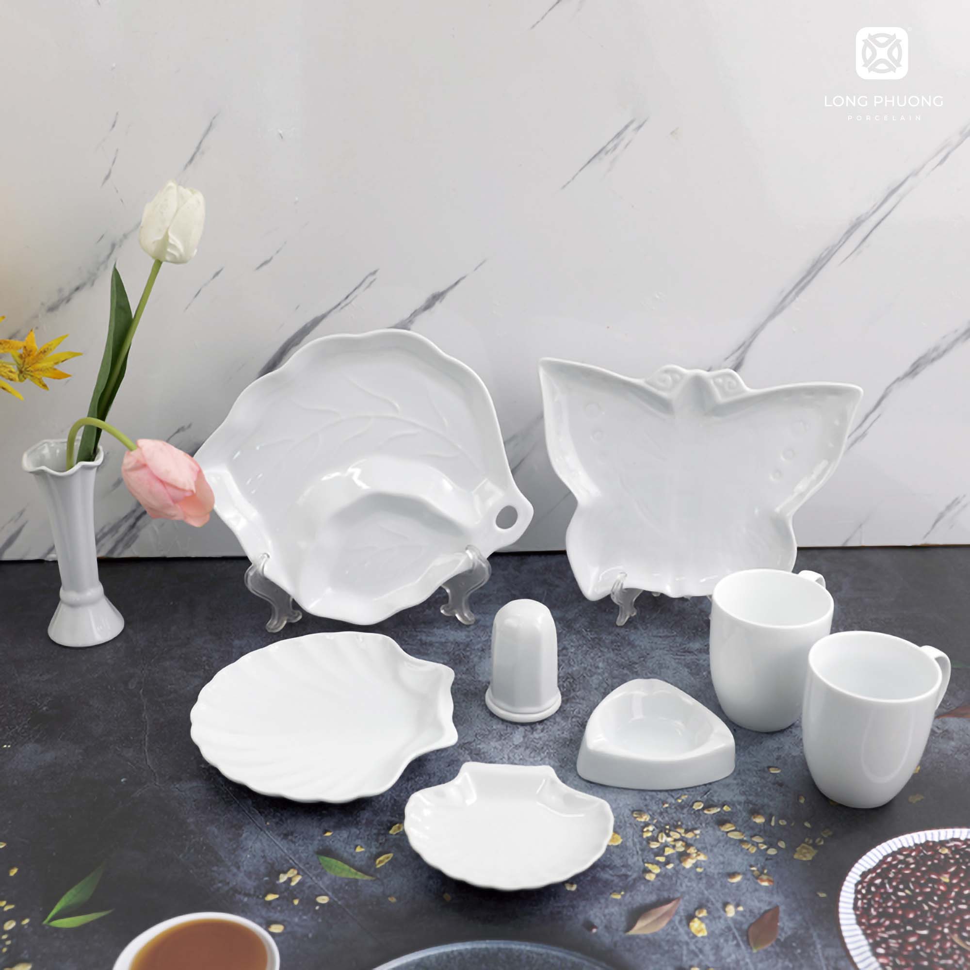 Bộ bát đĩa quà tặng An Nhiên bằng sứ trắng cao cấp Long Phương là bộ sản phẩm lấy cảm hứng từ lá tượng trưng cho thiên nhiên, hòa vào đất trời. Sản phẩm được