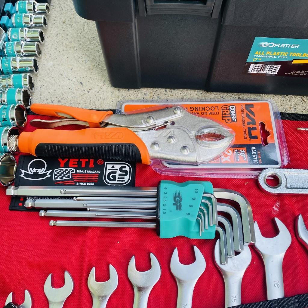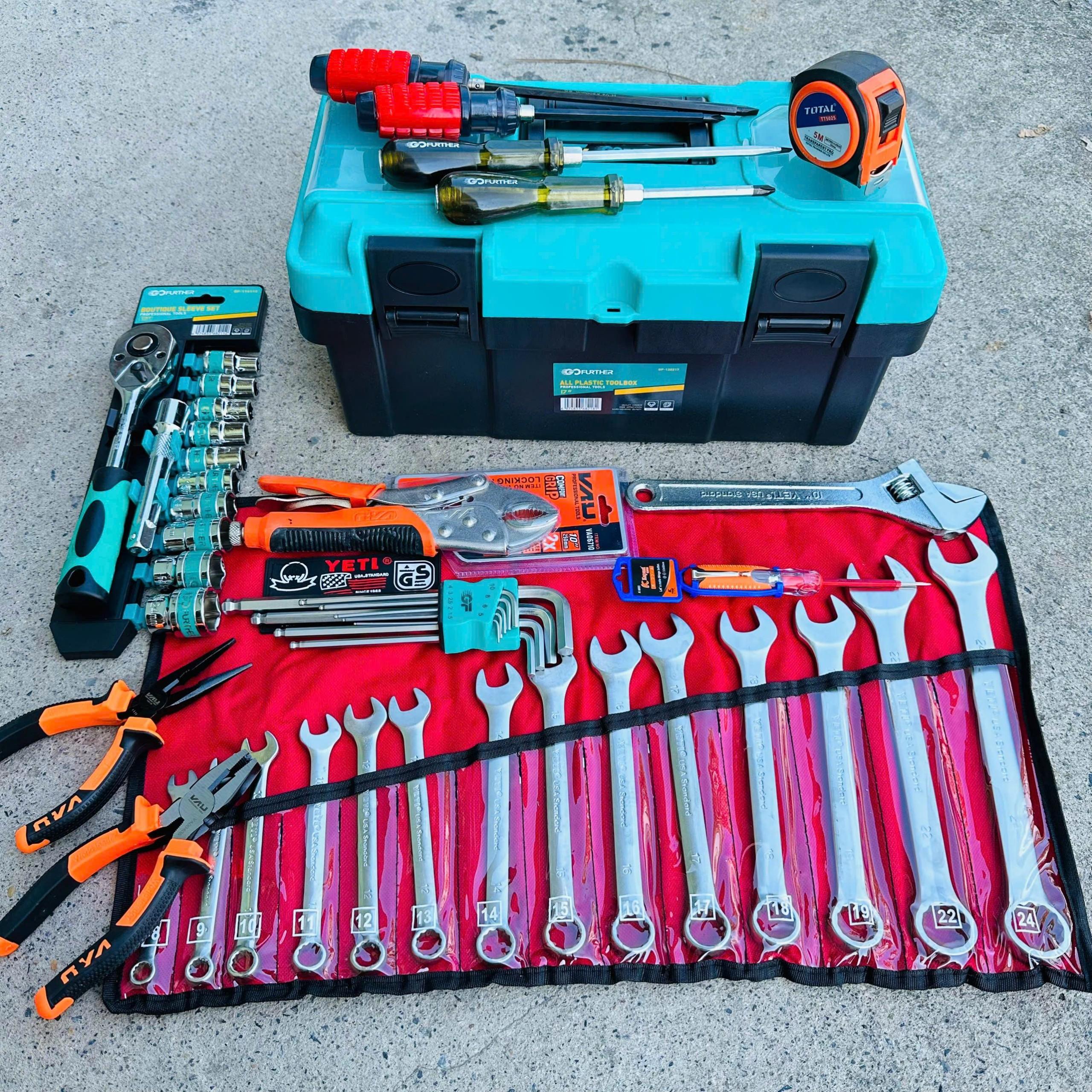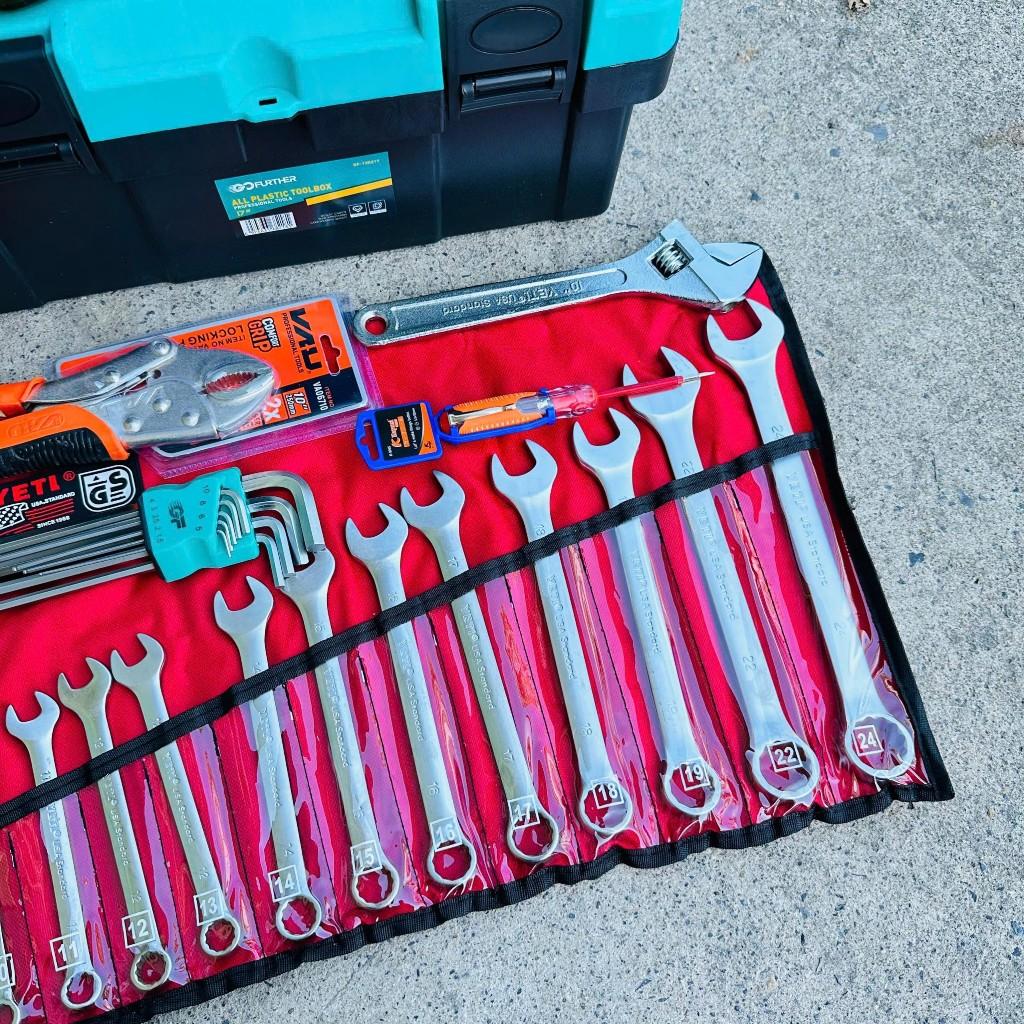 ✨Bộ dụng cụ 46 món đồ sửa chữa xe máy, máy móc: hộp đựng đồ, cle, mỏ lết, lục giác, tuýp, tô vít.GF46