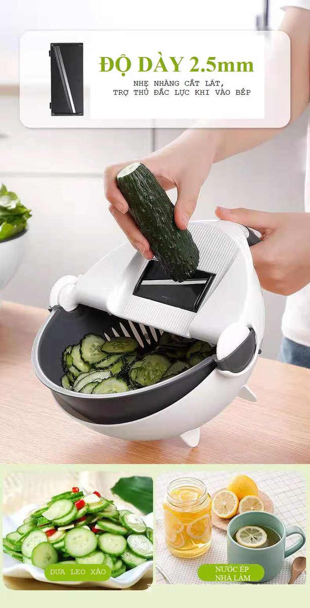 Rổ có thể tách rời nên có thể lấy ra rất tiện lợi, có thể làm rổ rửa rau củ vì rổ các khe ráo nước.