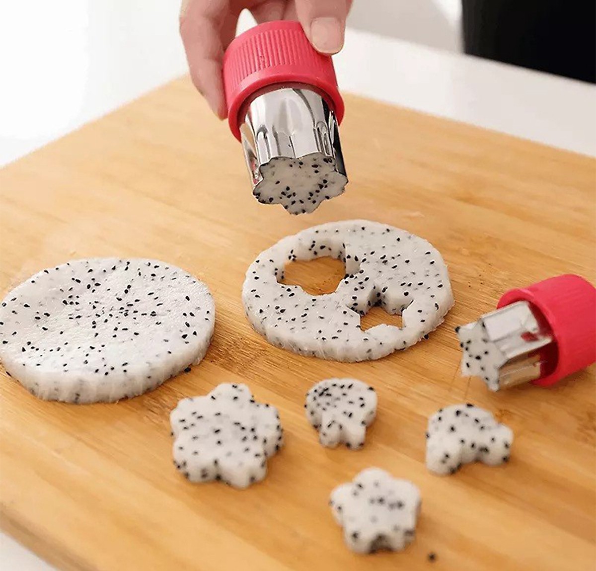 Mua tại TiktokBộ Khuôn Tỉa Củ Qủa 8 Món MÔ TẢ SẢN PHẨM Bộ Khuôn Tỉa Củ Qủa 8 Món luôn dễ dàng để cắt hoa quả thành nhiều hình dáng đẹp mắt chỉ trong 1 nốt nhạc. Việc bạn cần làm là ấn khuôn vào lát hoa quả có sẵn ( dày , mỏng tùy món ăn nha), lấy ra thì có ngay các loại hoa đẹp mắt. với khuôn này, nó sẽ giúp các bạn không mất nhiều thời gian mà còn tạo ra nhiều món ăn vừa ngon vừa đẹp. Bộ khuôn dễ chùi rửa, vì khuôn làm bằng thép không gỉ nên đừng lo bị sét nha. Ngoài ra dùng khuôn để cắt bánh hay rau câu đều ok hết , rất tiện dụng.