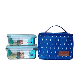 Bộ 2 Hộp Thủy Tinh Cường Lực chia ngăn Glasslock 670ml Và Hộp Chia Ngăn 1000ml + Túi Giữ Nhiệt