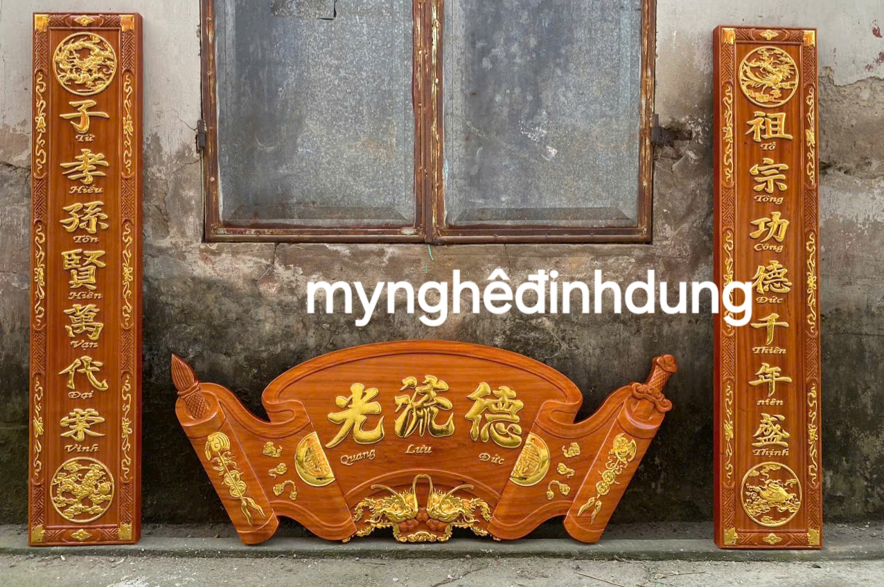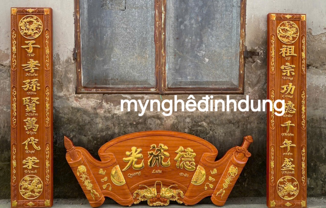 Hoành Phi Câu Đối Lòng Mo Gỗ Gụ Lào Sơn PU Dát Vàng Siêu Đẹp - Đồ Thờ Nam Quỳnh