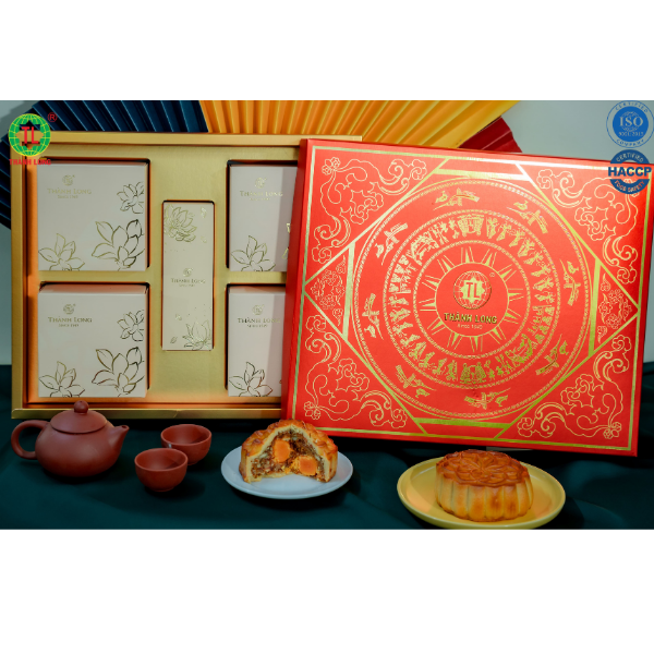 ✨Bộ hộp Bánh trung thu Thịnh Vượng 4 bánh 2 trứng 270g - Thành Long - 1080g - tặng 1 hộp trà - VIỆT NAM