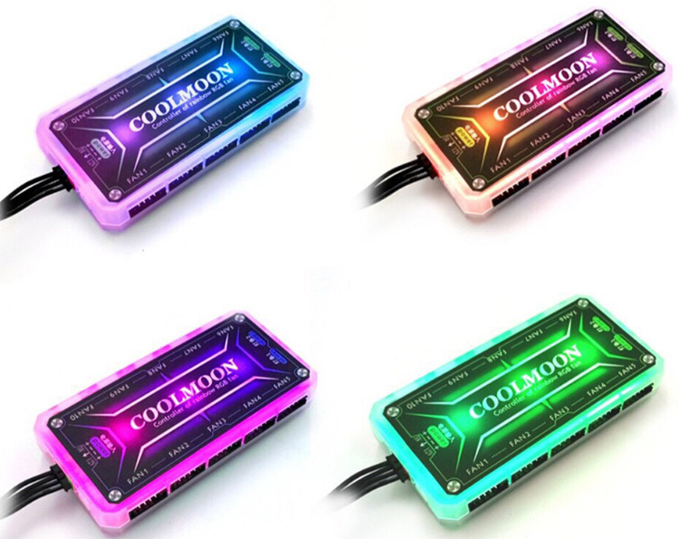 - Bộ hub RGB Coolmoon kèm điều khiển dùng cho Bộ quạt tản nhiệt RGB rainbown 16 triệu màu cùng 366 hiệu ứng chuyển màu làm cho bộ máy tính của bạn sẽ lung linh nổi bật và thật phong cách.