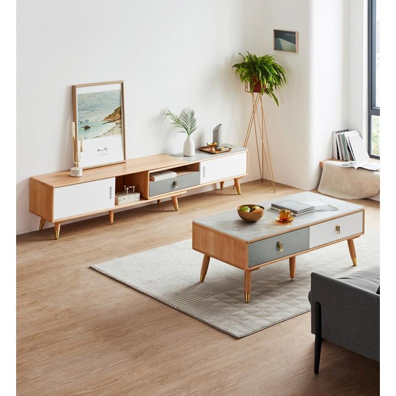 ✨Bộ kệ tivi và Bàn cà phê, bàn sofa vân đá phong cách Bắc Âu phòng khách chung cư nhỏ H155
