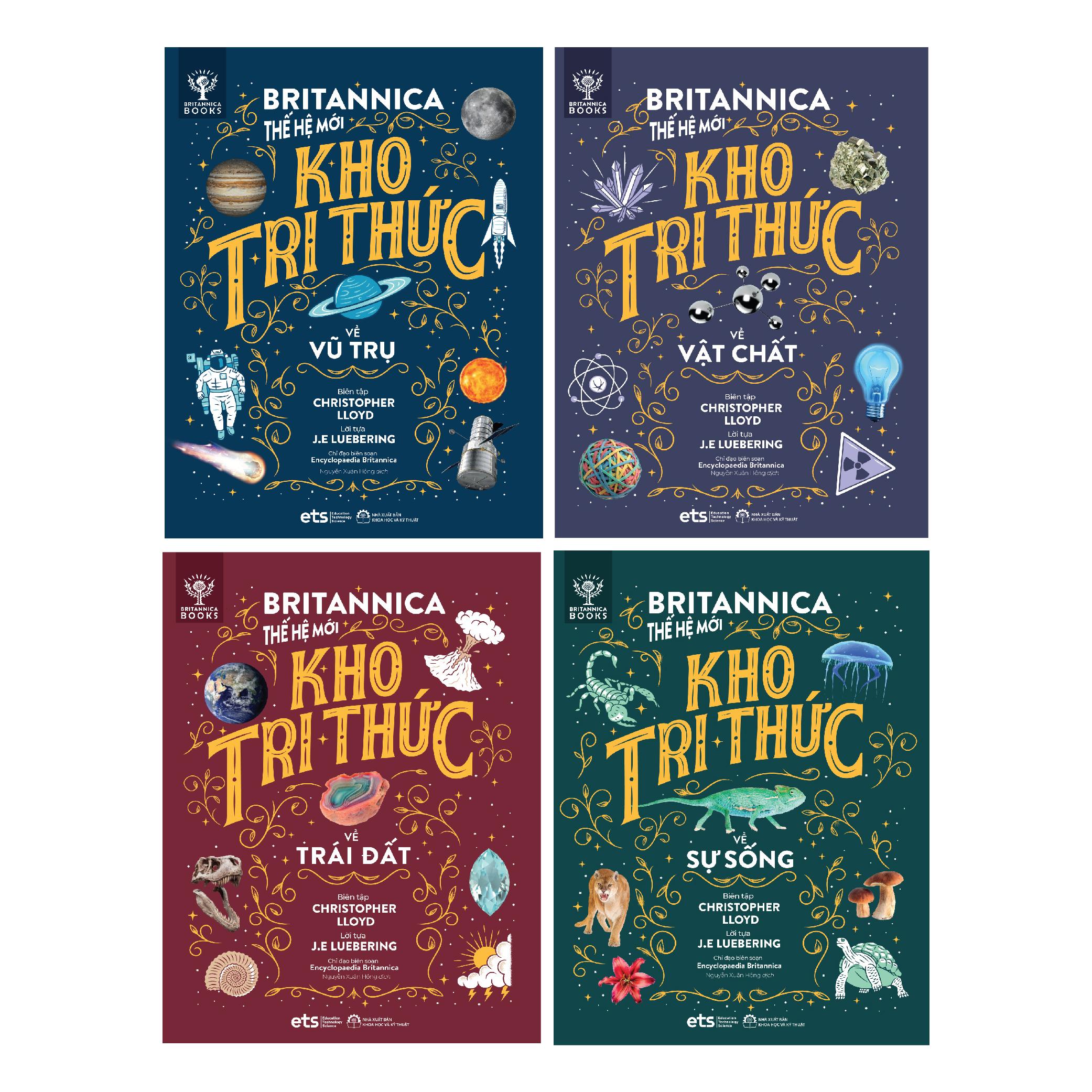 Britannica Thế hệ mới là sản phẩm của Encyclopedia Britannica, chuyên trang nổi tiếng trên toàn thế giới về dòng sản phẩm Bách khoa thư. Bộ sách gồm 8 cuốn, tương ứng với 8 chủ đề, hứa hẹn làm giàu thêm vốn kiến thức của độc giả từ khoa học tự nhiên (Vũ trụ, Trái đất, Sự sống, Vật chất) đến khoa học xã hội (Nhân loại, Thời cổ đại & trung cổ, Cận đại & hiện đại, Tương lai). Cách phân bổ nội dung theo từng chủ đề này khác với phong cách truyền thống (sắp xếp theo thứ tự A-Z), không chỉ đem lại diện mạo mới cho dòng sách mà còn giúp độc giả có thể lựa chọn đọc theo mảng kiến thức yêu thích hoặc còn cần trau dồi thêm. Đặc biệt, nhóm 4 cuốn Lược sử loài người được trình bày theo dòng thời gian như một câu chuyện kể từ thuở sơ khai đến cả những dự đoán tương lai, vừa giúp dễ hình dung, vừa khơi gợi trí tưởng tượng ở độc giả.
