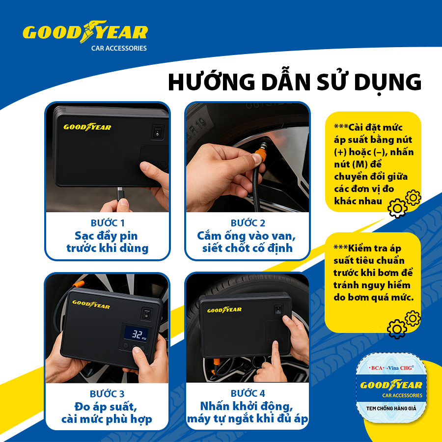 Bộ kích n.ổ kiêm bơm lốp và sạc dự phòng ô tô cao cấp Goodyear GY-5282, 10400mAh - Goodyear là một trong những công ty sản xuất lốp xe lớn nhất thế giới. Không chỉ