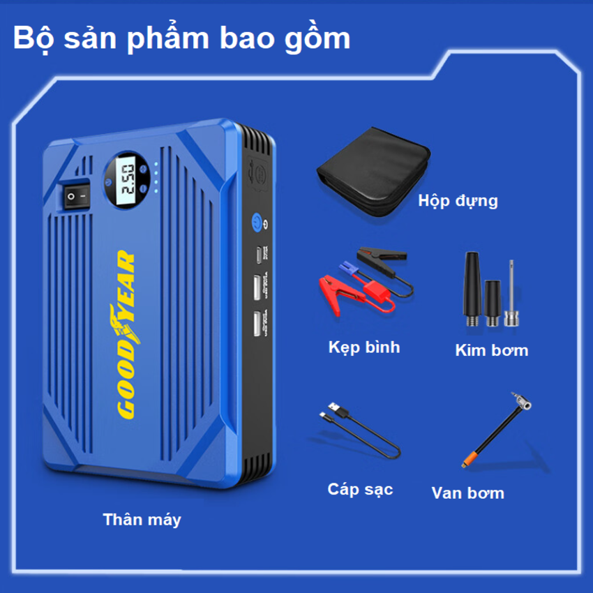 Mua tại TiktokBộ kích bình ắc quy kiêm bơm lốp và sạc dự phòng dung lượng 10400mAh dùng cho ô tô thương hiệu Mỹ cao cấp Goodyear GY-5282 - Hàng Nhập Khẩu