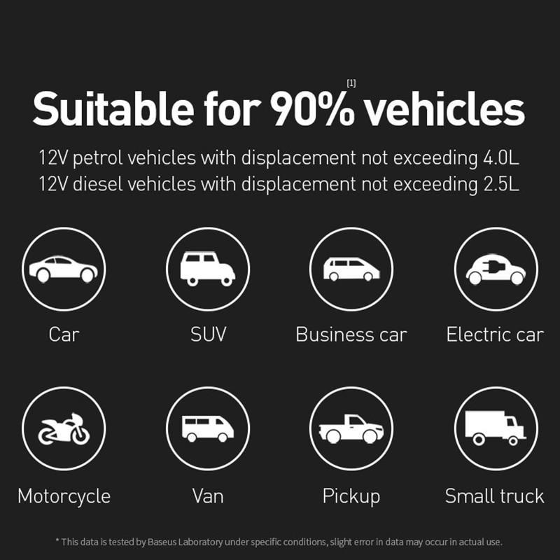 - Được thiết kế chuyên dụng, Bộ Kích bình Baseus Super Energy Pro Car Jump Starter phù hợp cho các loại xe ô tô sử dụng xăng và dầu hiện nay với dòng điện kích
